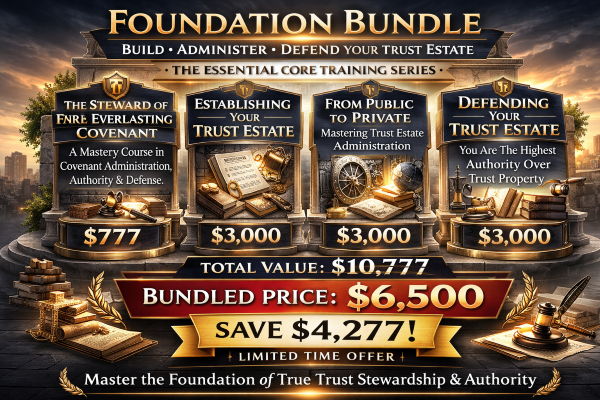The KOHTMS Foundation Bundle is the essential training series for anyone serious about understanding trust estate administration, covenant authority, and fiduciary stewardship. These four mastery-level courses form the core knowledge required to properly establish, administer, and defend a trust estate.